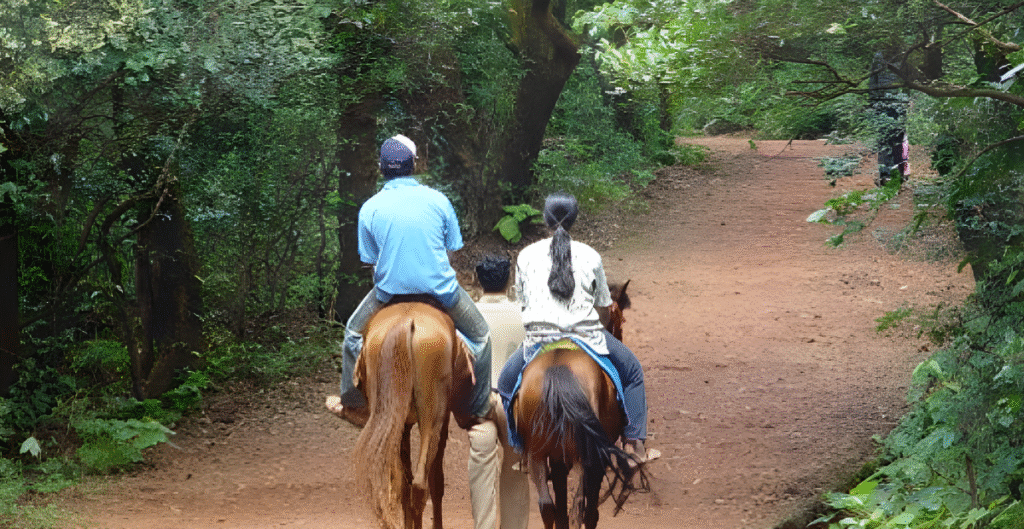 Matheran Maharastra -Walk through the old train tracks of Matheran and step into a childhood imagery world and fantasy. Walking the trail for about 40 minutes, you will feel that every turn is like the start of a magical forest adventure. While you trek, you will come across some dense green canopies and lush green valleys, and trees. Each space echoes with calm and unblemished nature. The earthy scent of forest trees and the peace that settles in the silence and air. Though you will enjoy the company of family and friends as you walk deeper into the woods, it can leave you with interesting memories and photos. As you go ahead with the birdsong that guides you, the way the valley opens up with some spectacular views that can be breathtaking. Slow and steady as you walk, you shall see the train tracks at the finish line and step into Matheran hill town. Oh yes! At the end of the trek feels like a dream and a walk into wonder.Matheran is Asia’s only place where automobiles and bikes are prohibited.Its an Unesco world heritage site. It’s an absolutely pollution-free hill station. Falls into the Western Ghats in the Sahyadri range. So just imagine how amazing it can get by just walking around this place. Oh, yes, you can also hop on a horse, Hand-pulled carts, or take a toy train to Matheran.