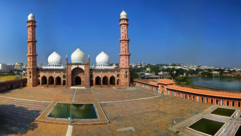 This majestic mosque is one of the largest mosques in India and a striking example of Mughal architecture. Built by Nawab Shah Jahan Begum, it features grand domes, tall minarets, and a vast courtyard that showcases the city’s Islamic heritage.